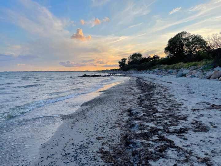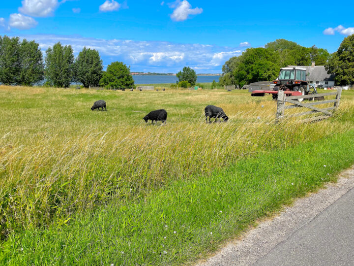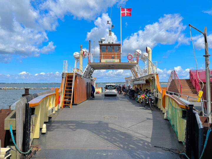 I started by cycling through a massive summer house area—it felt like it just went on endlessly, no matter which road I turned down. Naturally, there was a lovely holiday atmosphere in that area. I cycled the roughly 45 km up to Stubbekøbing quite easily. Here, the sweetest little ferry, “Ida,” sails over to Bogø in around 10–15 minutes for the modest sum of DKK 61,- for one friendly adult and an aluminum horse (bike).