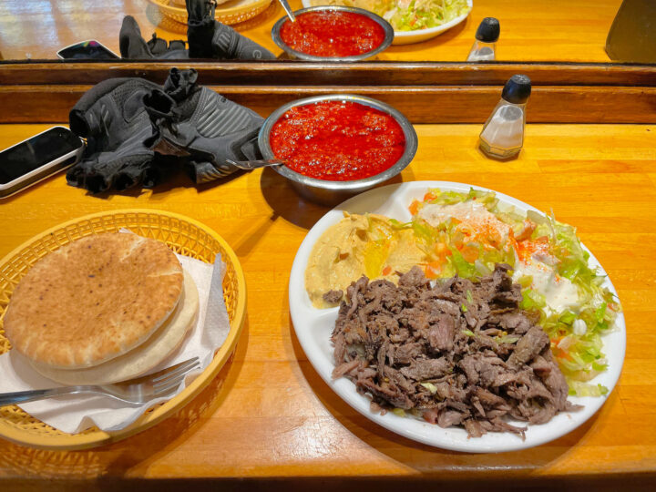 Bagefter cyklede jeg hen til Rådhuspladsen og låste min cykel ved et stort cykelstativ hvor der var en masse andre cykler. Papa her skulle på Sharwarma House, der ligger ganske få skridt inde på Strøget. Maden smagte himmelsk. Det er en tradition for mig at besøge det sted når jeg kommer til København.
