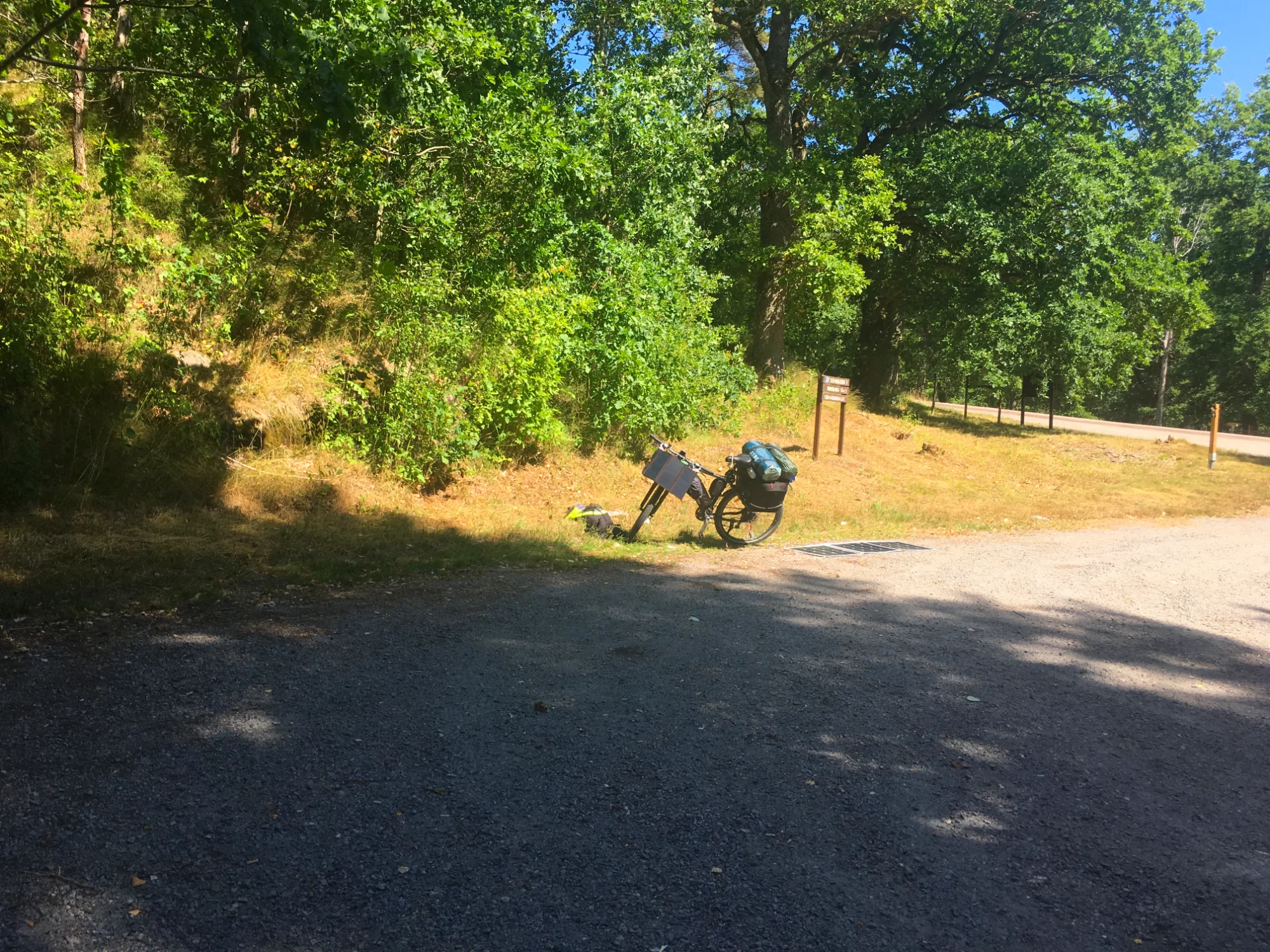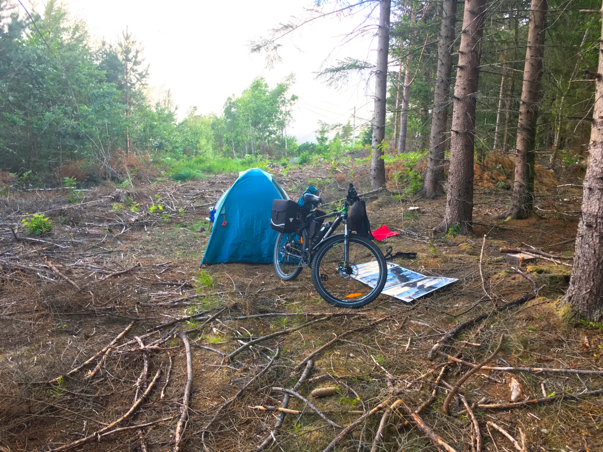 I found a nice private road going up and kinda backwards in a turn from where I came from. There where a ‘Private’ sign I ignored and pushed my bike up the road and found some forrest on the top I could push into. it was another great camp spot, totally invisible from the public road and the private one I cam from. Today I traveled 68,6 km.
